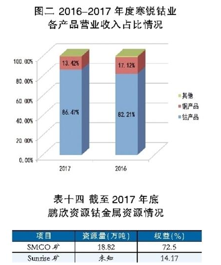 然而,2017年其鈷產品的銷售量是下滑的(見表十二);顯然,其鈷產品收入的大幅增長是受益于鈷價大幅增長的結果。