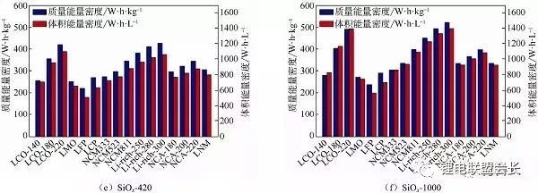圖2不同負(fù)極材料與不同正極材料匹配的電芯能量密度計(jì)算(a)石墨;(b)軟碳SC-400;(d)硬碳-250;(e)SiOx-420;(f)SiOx-1000;(g)Si-C-450;(h)Si-C-1000;(j)鈦酸鋰