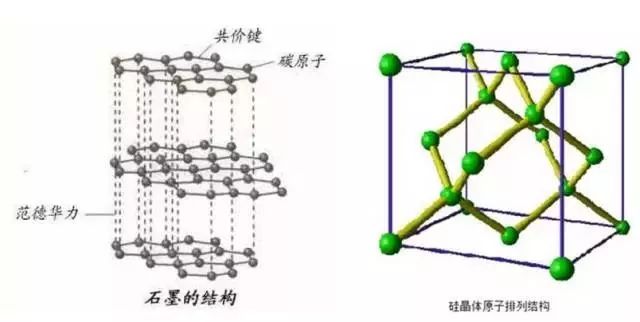 硅的結(jié)構(gòu)和石墨層狀結(jié)構(gòu)不同(如下圖),其儲(chǔ)能機(jī)理也與金屬材料類似是通過(guò)與鋰離子的合金化和去合金化進(jìn)行的,其充放電電極反應(yīng)可以寫作下式:
